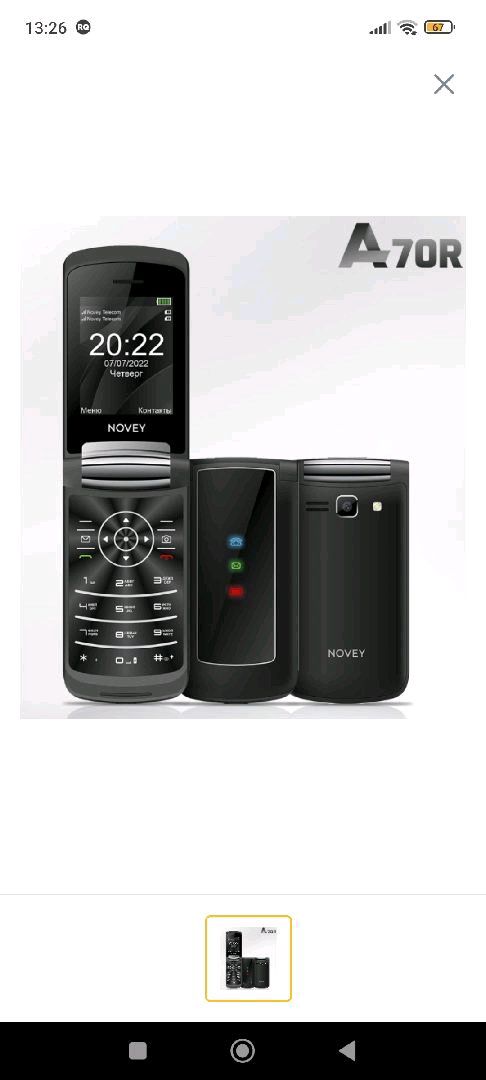 Кнопочный телефон Novey A70R , Черный