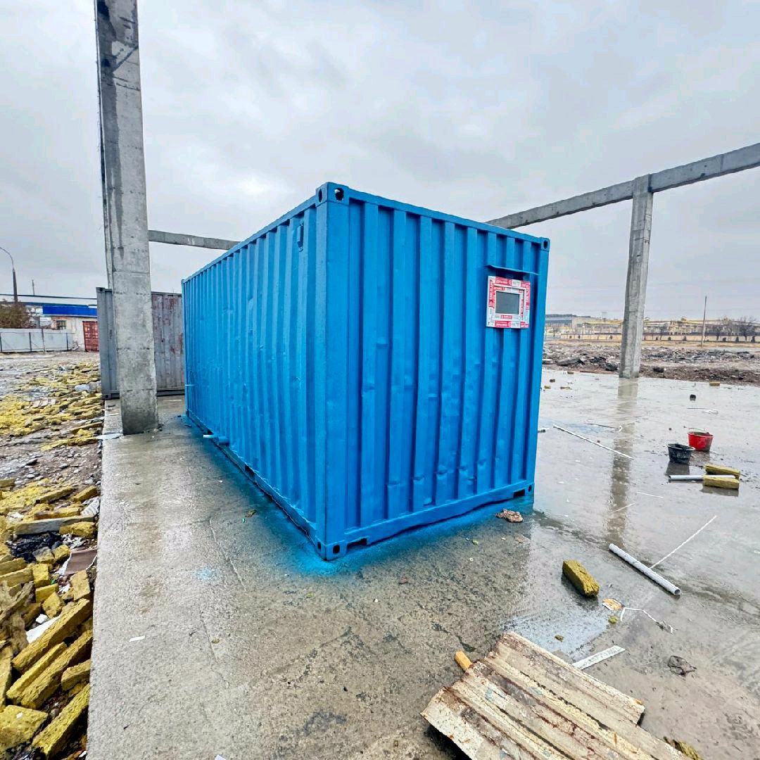 6 метров контейнера Душевой и туалет! Пол кафе и реллин Утепление мембраны Утепления миновать Стена декоративная пвх Окна пвх Наружны двери железные Внутренний дверь алюминий Поддон акрил 3 штука Унитаз чашаген 3 штука Раковина 2 штук Бойлер 1 штук 50 литровый Узкабел провод Ледлампа 3.500$ наличие А перечисление 47.800.000 сум
