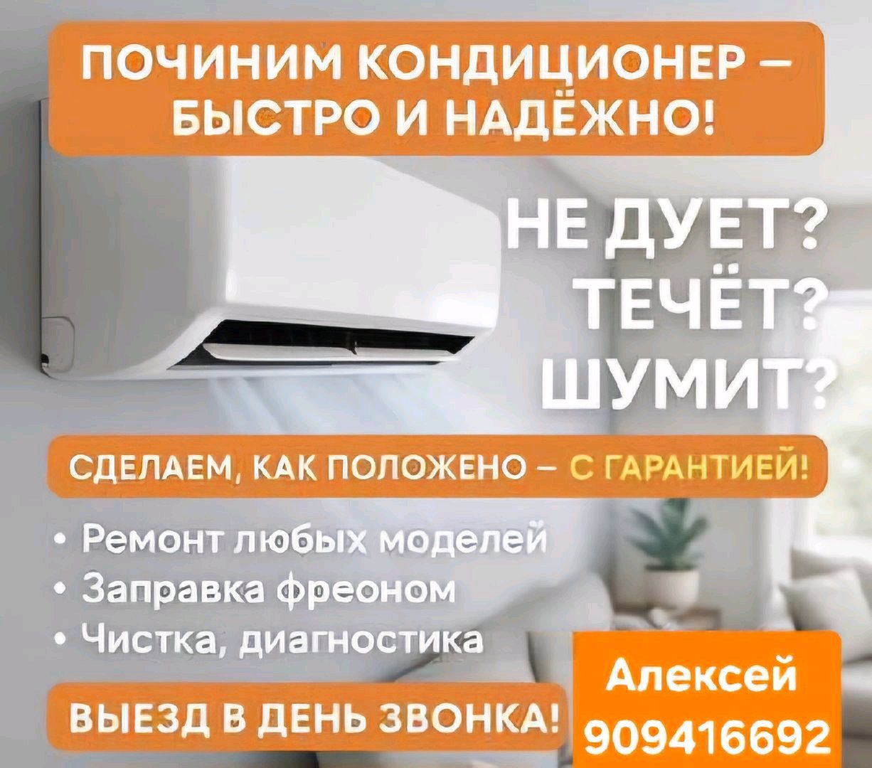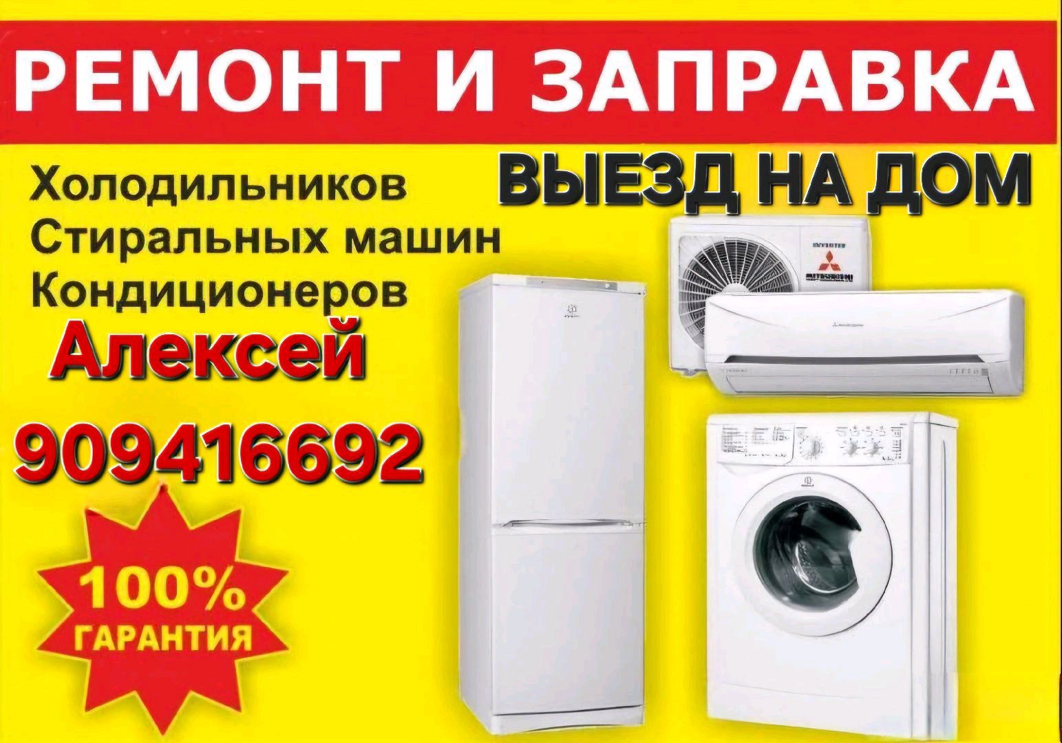 Мастер с большим опытом работы, поможет Вам решить проблемы с бытовой техникой качественно и быстро, у Вас на дому. Гарантия! РЕМОНТ БЫТОВОЙ ТЕХНИКИ НА ДОМУ👇: 👉 РЕМОНТ ХОЛОДИЛЬНИКОВ; 👉 РЕМОНТ СТИРАЛЬНЫХ МАШИН; 👉 РЕМОНТ МИКРОВОЛНОВЫХ ПЕЧЕЙ; 👉 РЕМОНТ КУЛЕРОВ; 👉 РЕМОНТ ПЫЛЕСОСОВ; 👉 РЕМОНТ МОРОЗИЛЬНЫХ КАМЕР; 👉 РЕМОНТ и ЗАПРАВКА КОНДИЦИОНЕРОВ. МОИ ПРЕИМУЩЕСТВА: 👍 Выезд в любой район города. 👍 Ремонт на месте. 👍 90% запчастей с собой в наличии. 👍 Оригинальные и заводские запчасти. 👍 Стараюсь попутно решать все ваши бытовые проблемы. 👍 Гибкая ценовая политика. 👍 Различная форма оплаты. Для быстрого решения проблемы и устранения неисправности применяйте Телеграм (фото и видео) 909416692. Я всегда на связи. И буду рад Вам помочь. Телефон для связи: Алексей 909416692