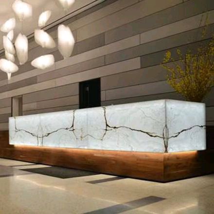 Стойки ресепшен-администратора из кварца, мрамора, гранита, акрила.