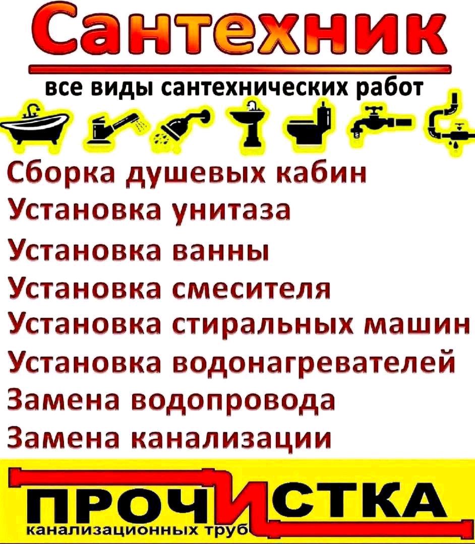 Срочный вызов Сантехника со стажем работы.Весь профеесиональный инструмент всегда при себе. Работаю на себя не посредник не фирма. Выезжаю во все районы города Ташкента в день звонка. Звоните с 8.00 до 19.00 работаю без выходных. УСЛУГИ САНТЕХНИКА ДЛЯ ДОМА - установка смесителя замена ремонт - замена смесителя - установка стиральной машинки - подключение стиральной машинки - установка моек - подключение моек - установка унитаза - замена унитаза - замена труб водоснабжения полипропилен - замена труб канализации - установка посудомоечной машины подключение монтаж - устранение течи воды - замена гофры на унитазе - ремонт унитазных бачков замена сливной арматуры - замена сифона - установка ванны - установка водонагревателя - ремонт водонагревателя - установка писсуаров биде - установка полотенце-сушителя - установка стиральной или посудомоечной машины - установка и замена водосчетчиков - замена стояков труб батарей радиаторов отопления - замена труб водоснабжения и канализации металлопластик полипропилен устранение течи труб водоснабжения -УСТРАНЕНИЕ ЗАСОРОВ ВАНН РАКОВИН.