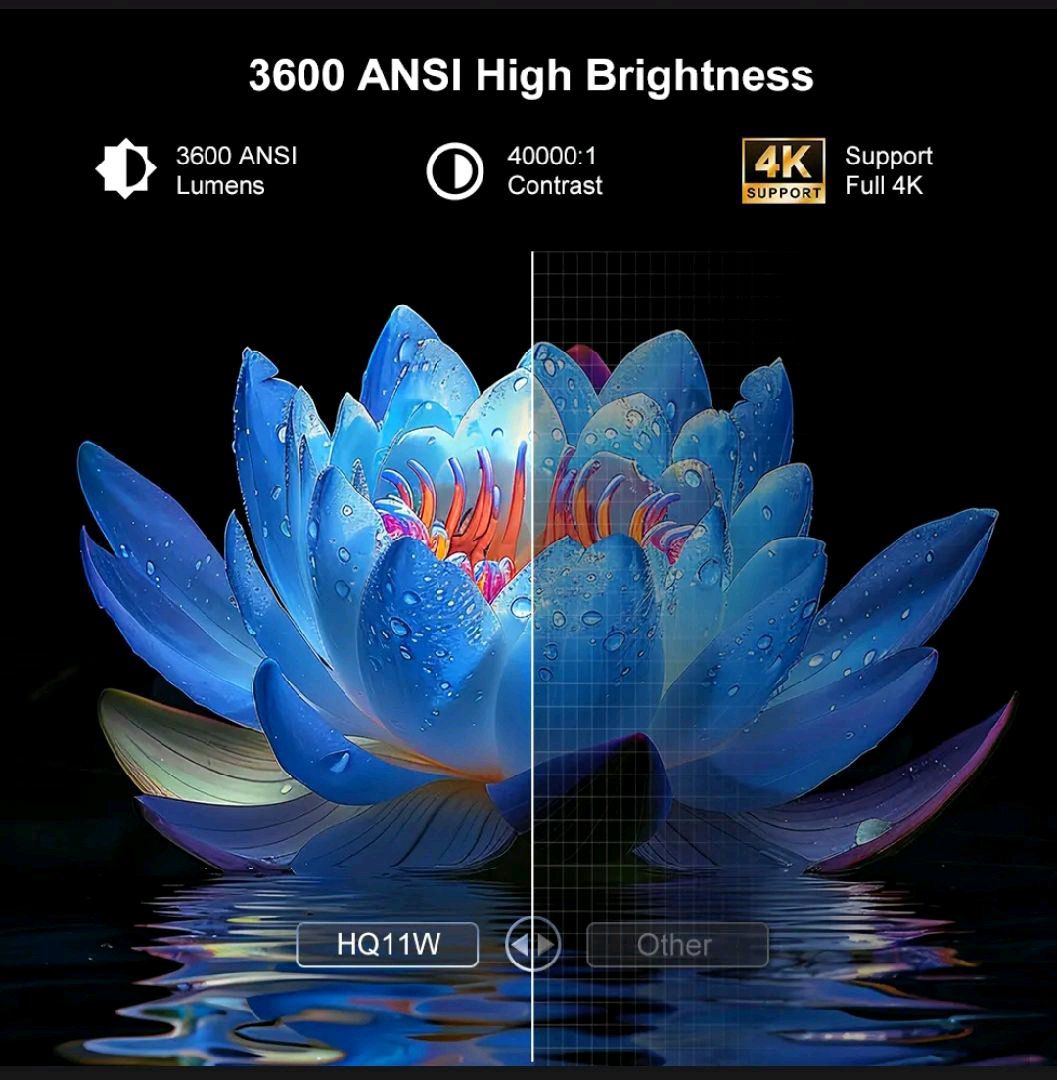 Новый модель от бренда Everycom апгрейд новый чип и очень высокая яркость с отличном детализация картины уже в продаже. Детальнее Модель: Everycom HQ11W Тип: 1LCD 5,7 inch Яркость: 3600ansi (50.000) люмен Контрастность: 40.000.1 Разрешение: 1920х1080 до 4к Лампа: 50.000 часов Система: Андроид 15.0 Процессор:Hi3751v660 A53*4 Mali-450 MP2 Звук: 2х10w stereo Память: 3гб +64гб Весь брутто: 4.2 кг Страна происхождения: Китай Гонконг