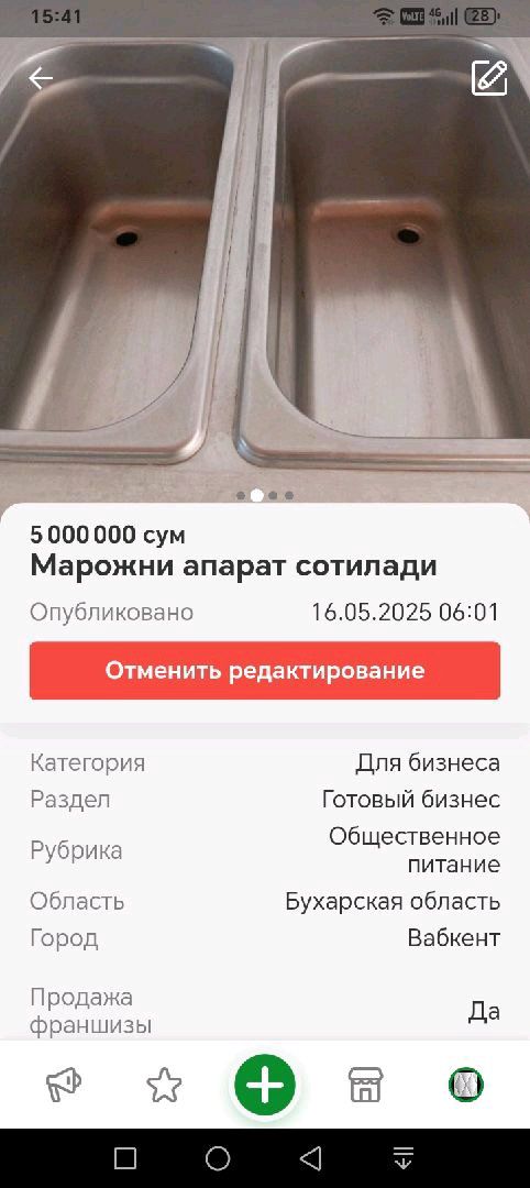 марожне апарат сотилади ишлаши зур нархи 3 милон